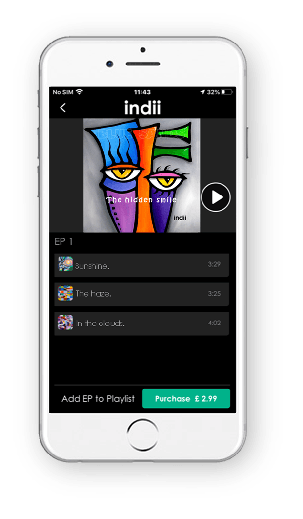 Create a secure user profile to access in app purchases, for limitless streams of EP Music Video tracks, custom playlists and offline playback.